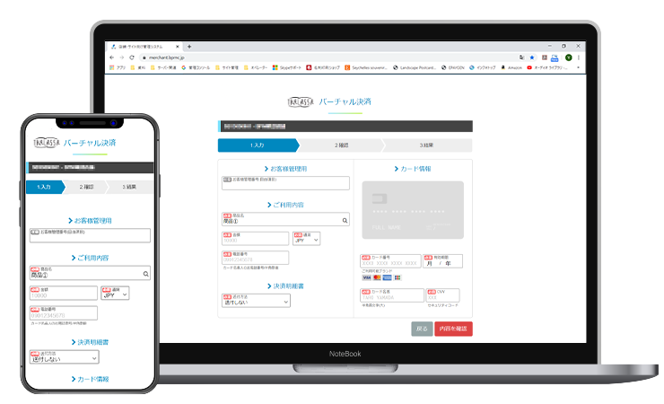 貴店のパソコンやスマートフォン、タブレット端末からカード情報を入力する決済手段です。